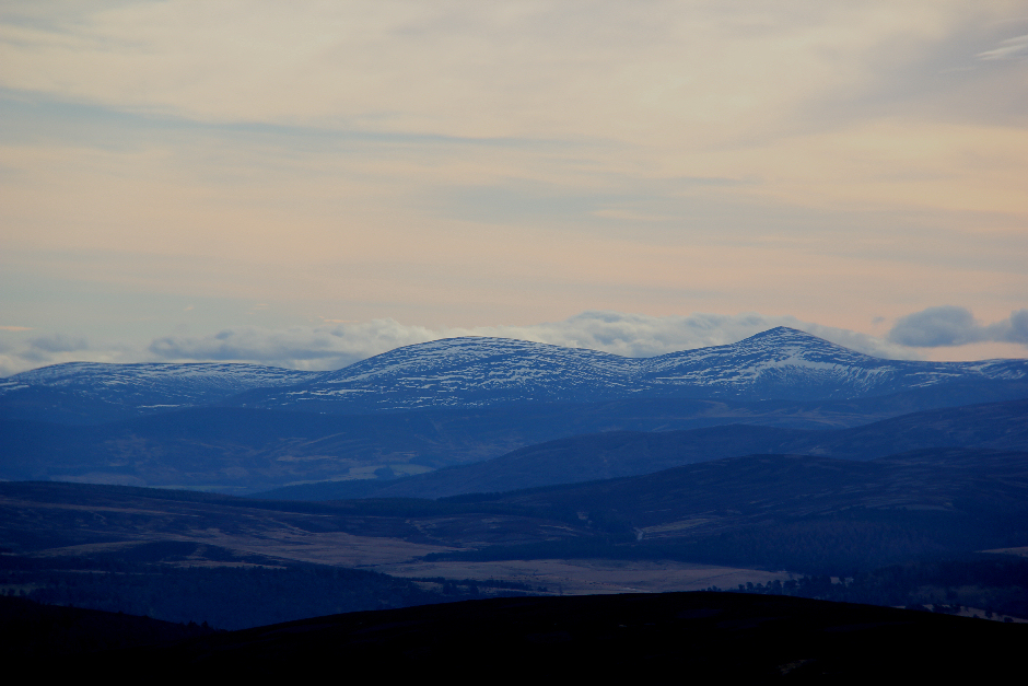 the Cairngorm National Park to the south, including Mount Keen and Lochnagar.