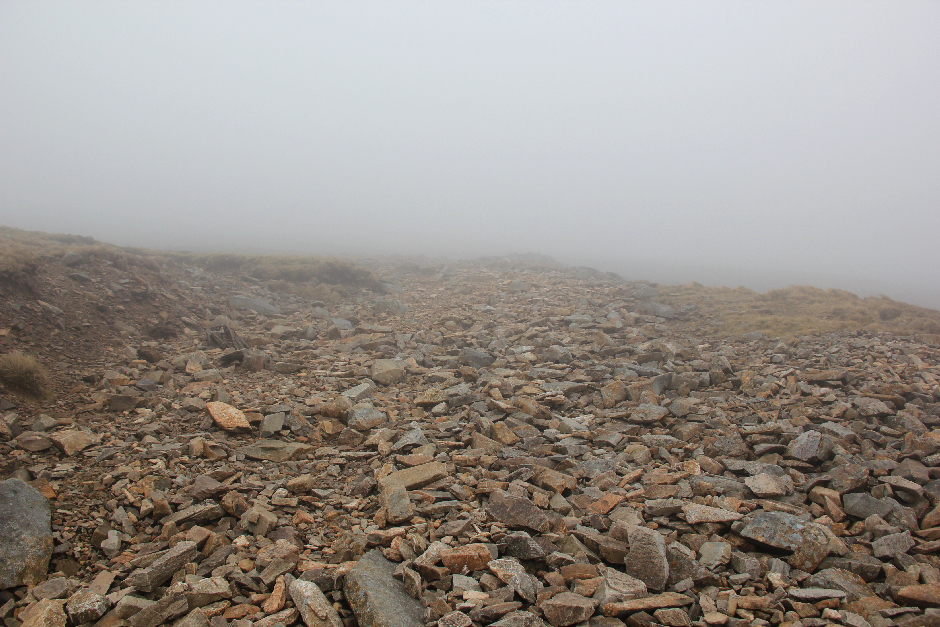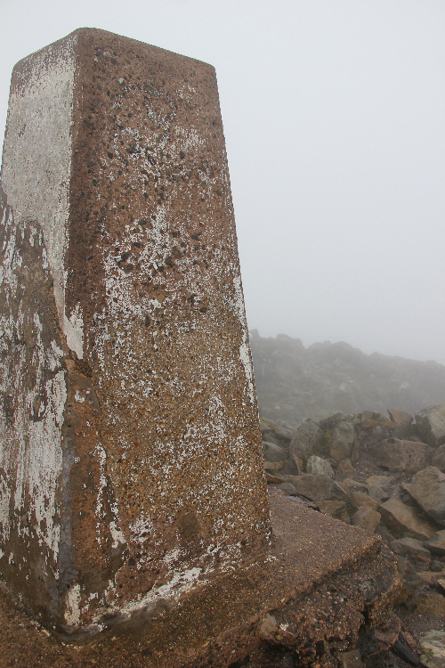 On reaching the summit, I stopped long enough to take a photo and then returned via the same route. I wasn't hanging around because there were no views and I had to get back to the car park within four hours.