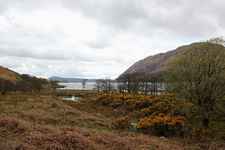 On completing the long trudge through the flat expanse, I could see down to Ardmaddy Bay. I was no longer alone at the bay as eight further tents had been pitched (a Duke of Edinburgh awards group).