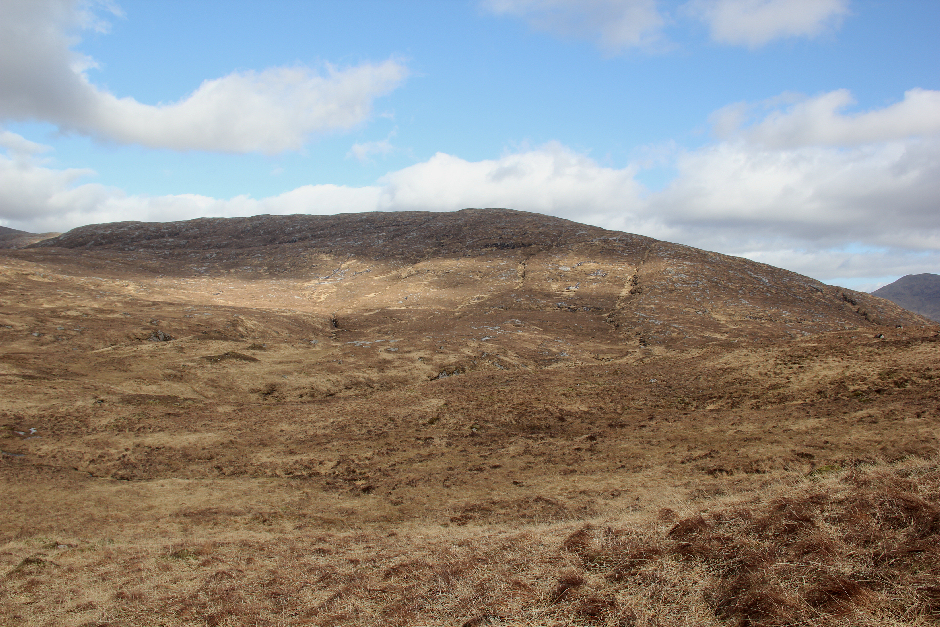 Crossing the expanse of flat ground was harder and took considerably longer than anticipated. The ground is trackless and wet and it is difficult to walk in any kind of straight line. On catching my first glimpse of Beinn nan Lus around 16:30, it still looked a long way off!