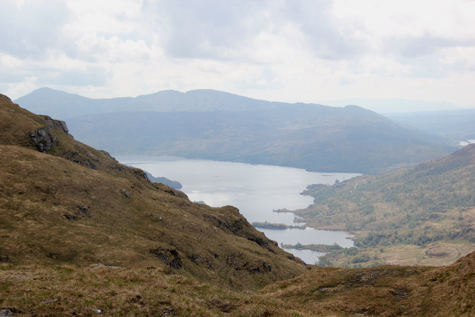 From the end of Loch Katrine there are numerous options for heading up Meall Mor. The easiest ascent, via gentle grass slopes,