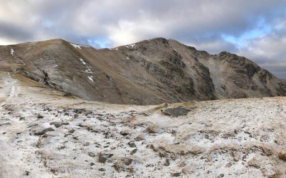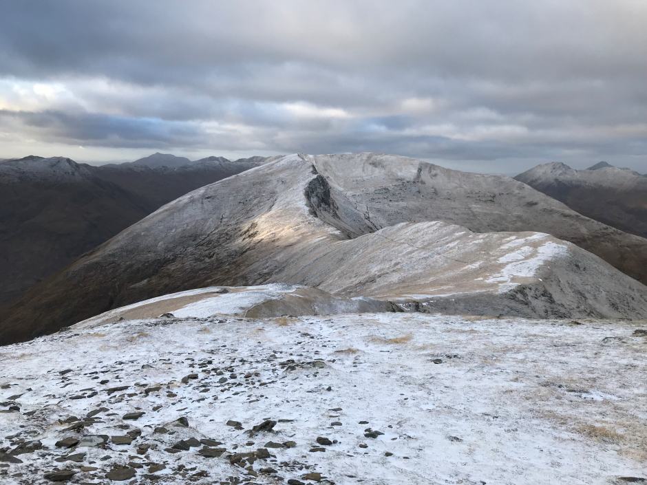 A dusting of snow on the upper slopes of Creag a' Mhaim: