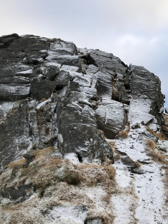 down-scrambling. With the coating of snow the scrambling was still easy but