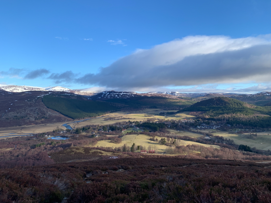 Braemar and beyond to Beinn a' Bhuird and Ben Avon.