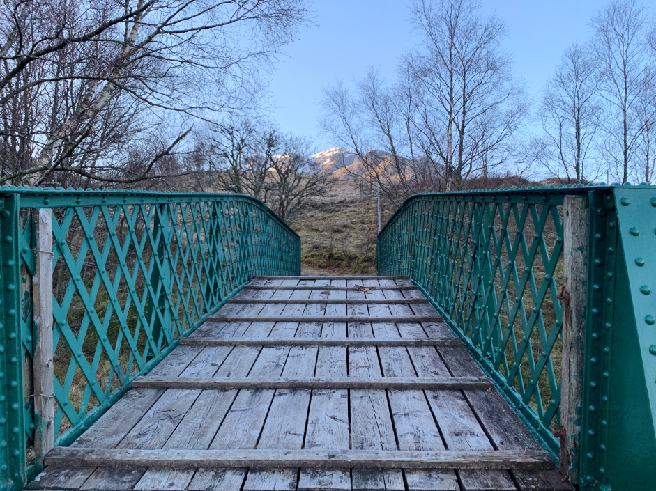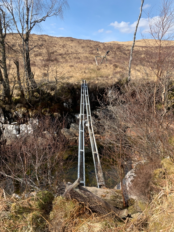 reaching the bridge above Achallader farm.