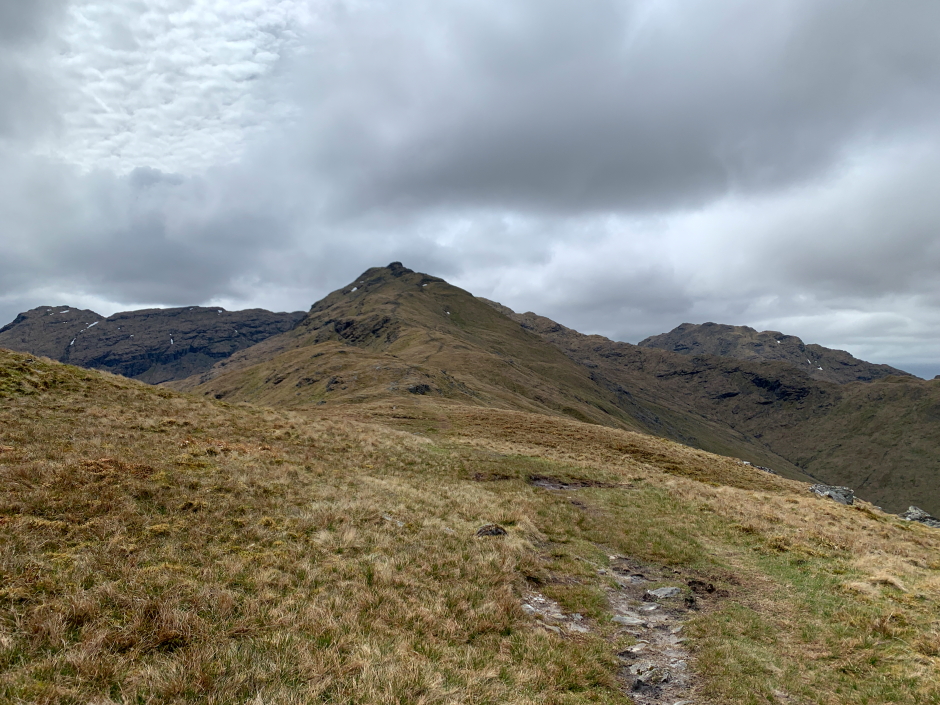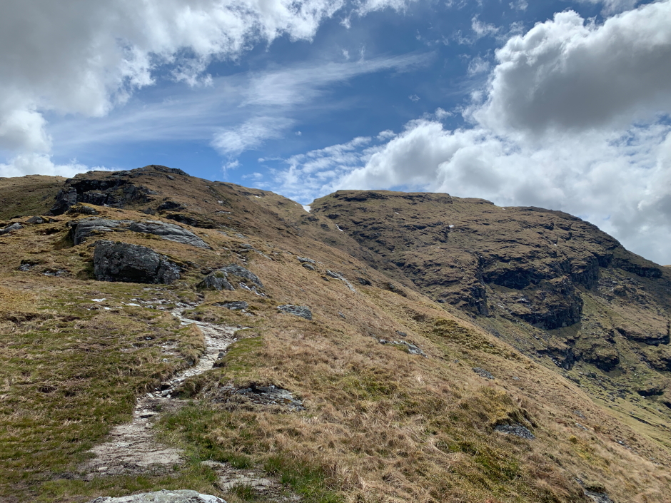 The descent of An Caisteal and the following ascent of Beinn a' Chroin were