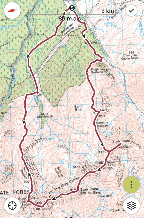 Hills: Stob Coire Gaibhre, Stob Coire na Ceannain, Stob Choire Claurigh, Stob