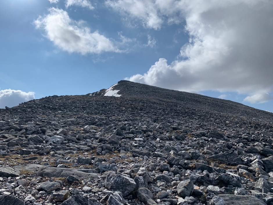 na Ceannain before ascending another couple of hundred metres to the 1121m