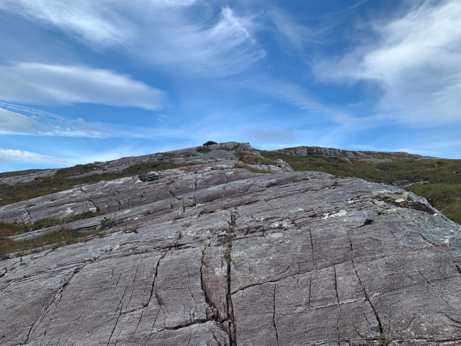 has an easy grassy ascent up through the rocks.