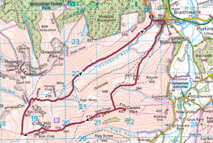 From the car park, we descended to Braithwaite and then followed the