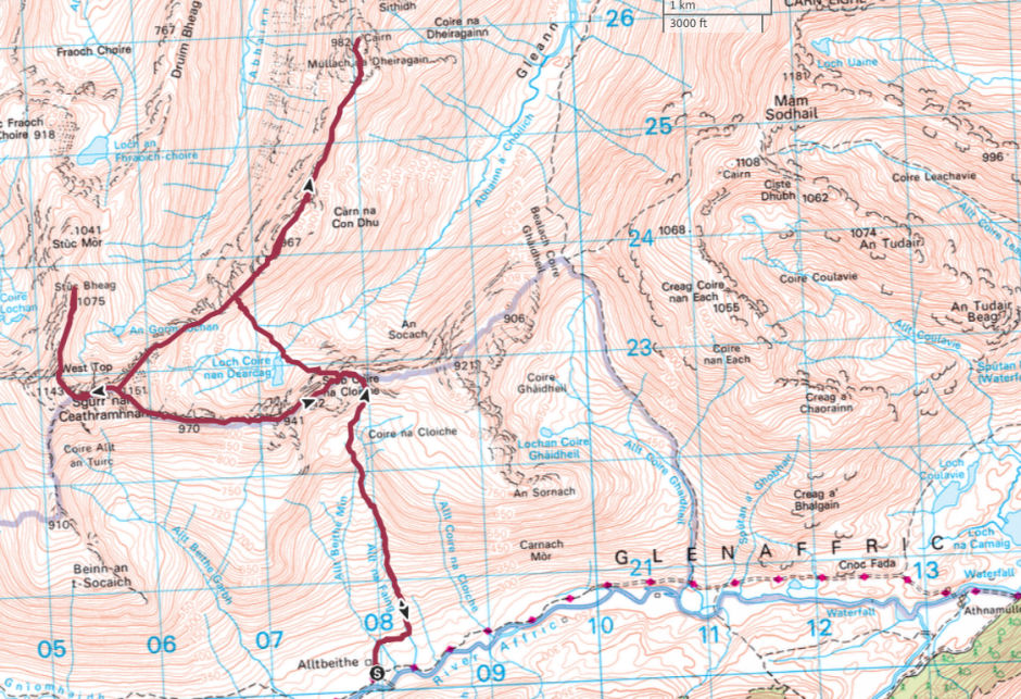 Hills: Mullach na Dheiragain, Carn na Con Dhu, Sgurr nan Ceathreamhnan
