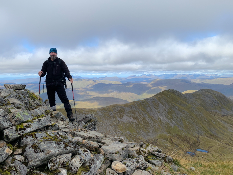 Ann-Marie approaching the summit of remote Mullach na Dheiragain:
